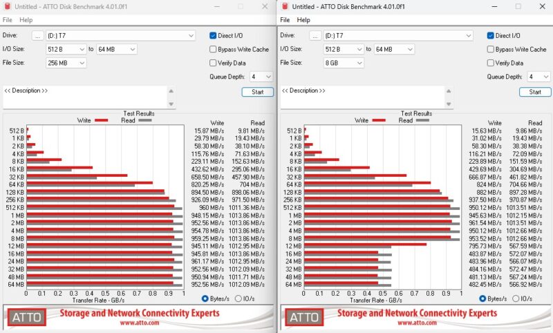 The ATTO Disk Benchmark has been a staple of drive sequential performance testing for years. ATTO was tested at both 256MB and 8GB file sizes.
