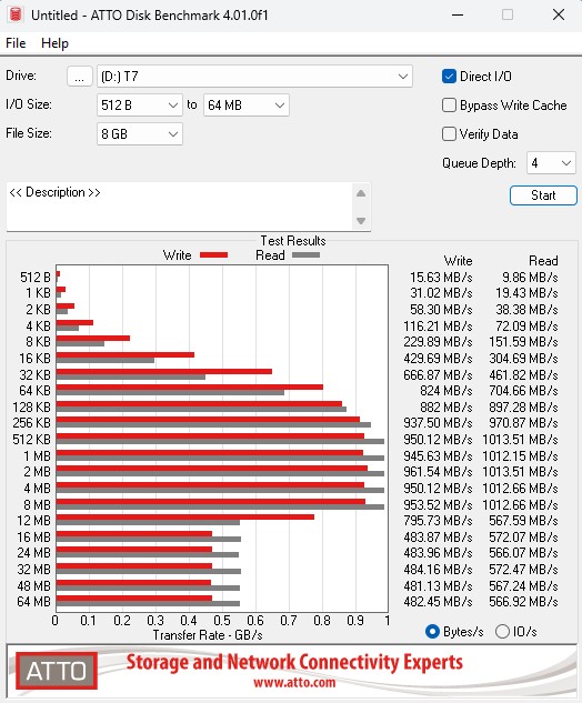 With the same system and same USB port we did not see the same result on the 8GB test falling off a cliff on the T7 Shield which was interesting.