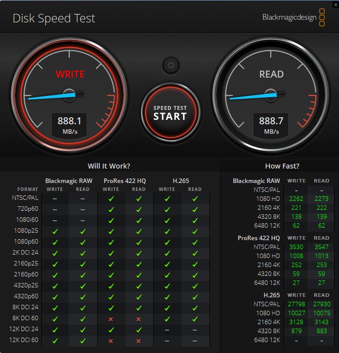 BlackMagic Disk Speed Test is focused on testing storage for use in video workflows.