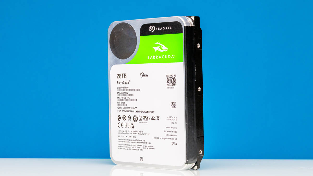 Seagate Barracuda 28TB HAMR Front Label Angle 1