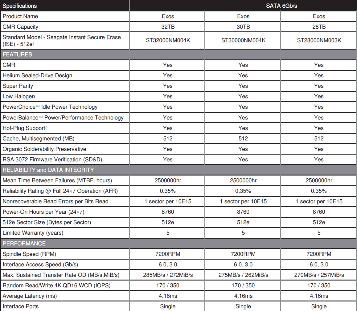 Seagate Exos 32TB Specs