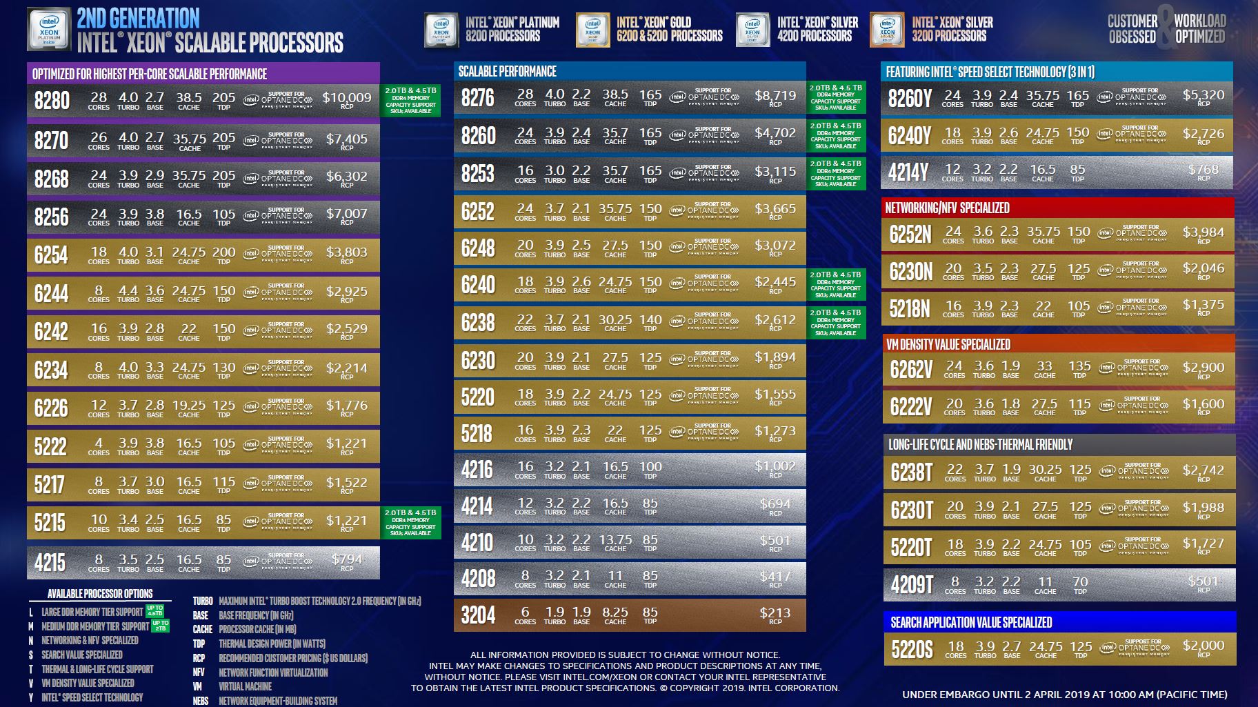 Second Generation Intel Xeon Scalable Processors SKU List With Pricing