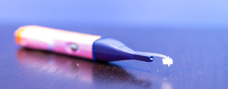 The FiberLert comes in a pen size form factor, although it is much larger than a pen. It even has a clip to secure it into a pocket.