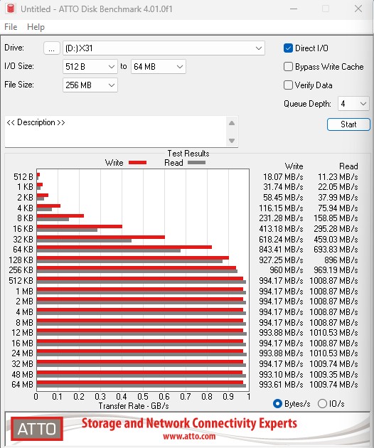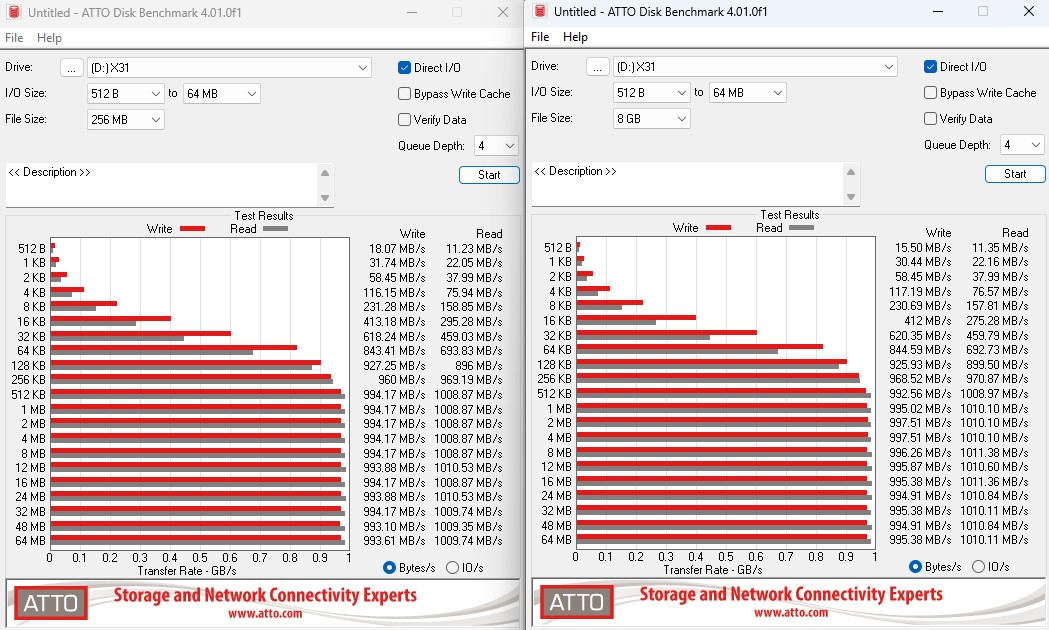 The ATTO Disk Benchmark has been a staple of drive sequential performance testing for years. ATTO was tested at both 256MB and 8GB file sizes.