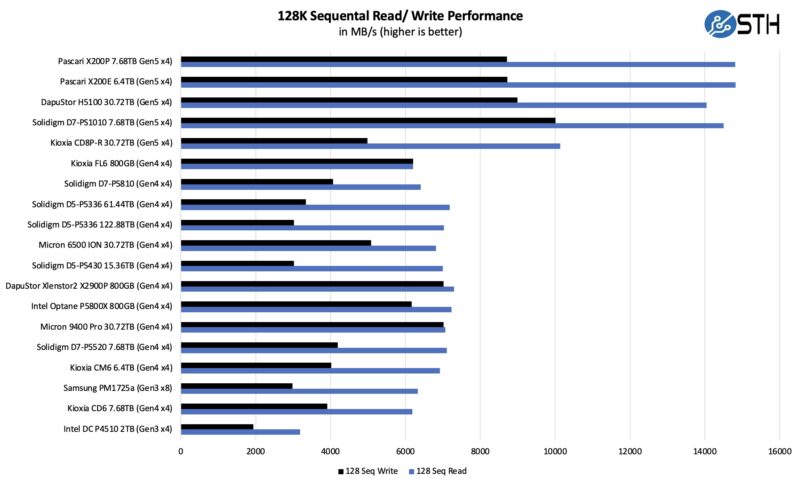 Our first test was to see sequential transfer rates and 4K random IOPS performance for the SSD. Please excuse the smaller-than-normal comparison set. In the next section, you will see why we have a reduced set. The main reason is that we swapped to a multi-architectural test lab. We test these in more than 20 different processor architectures spanning PCIe Gen4 and Gen5. Still, we wanted to take a look at the performance of the drives.