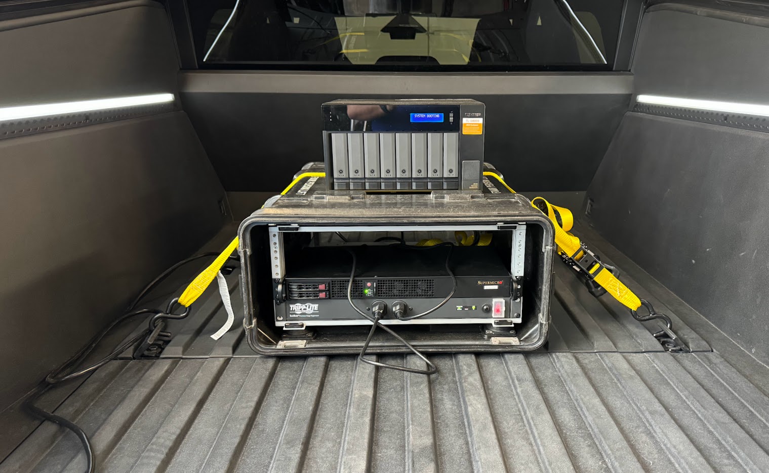 Cybertruck Mobile Data Center With QNAP HDD And Supermicro SSD Test Fitting