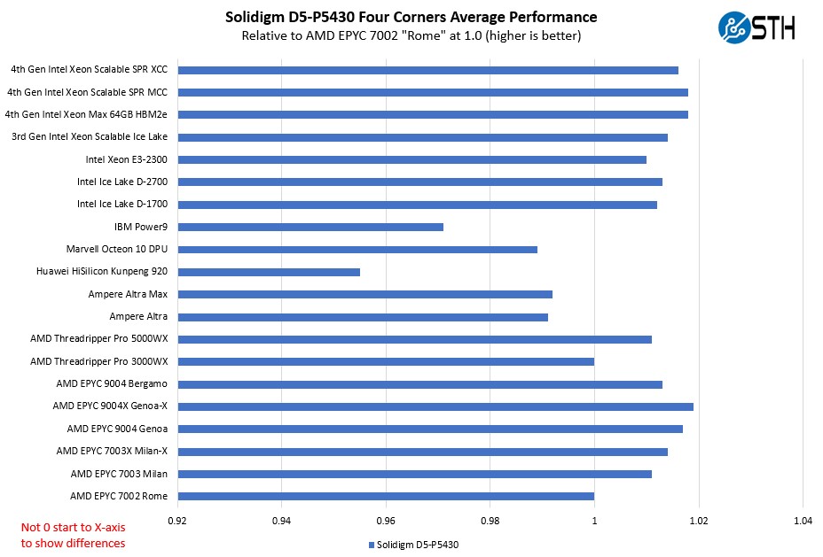 Solidigm D5 P5430 Four Corners Average Performance By Architecture Zoomed