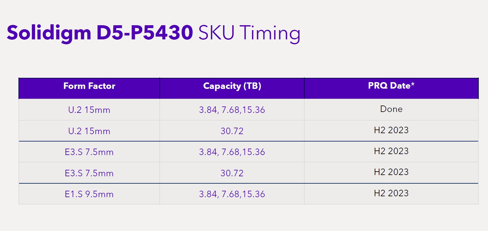 Solidigm D5 P5430 Mainstream QLC SSD Timing