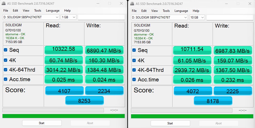 Solidigm D7 PS1010 7.68TB AS SSD 1GB And 10GB