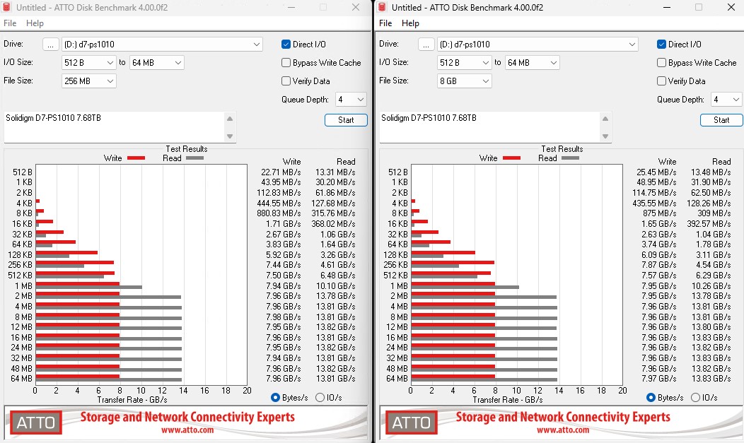 Solidigm D7 PS1010 7.68TB ATTO 256MB And 8GB