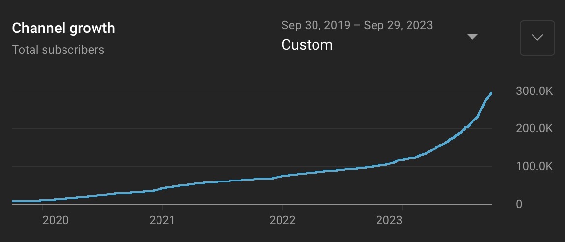 STH YouTube Subscriber Growth 2019 2023 September 30