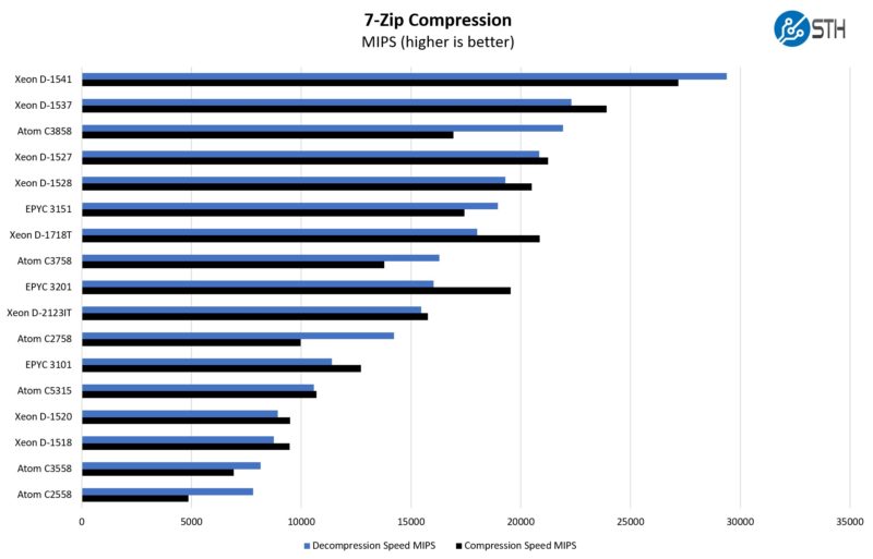 This is a super-cool result. While some may use QAT offload for compression, the non-QAT numbers show something really interesting. We are getting better performance than we get on the older Broadwell-DE 4 core/ 8 thread Intel Xeon D-1520/D-1518 parts and compression faster than 8-core C2758 parts. For older embedded gear, that is a very powerful result since it may mean being able to change to an Atom architecture or using half as many Atom cores for a similar amount of work.