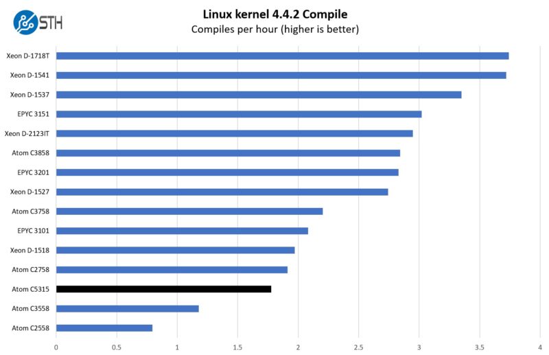 This is one of the most requested benchmarks for STH over the past few years. The task was simple, we have a standard configuration file, the Linux 4.4.2 kernel from kernel.org, and make the standard auto-generated configuration utilizing every thread in the system. We are expressing results in terms of compiles per hour to make the results easier to read: