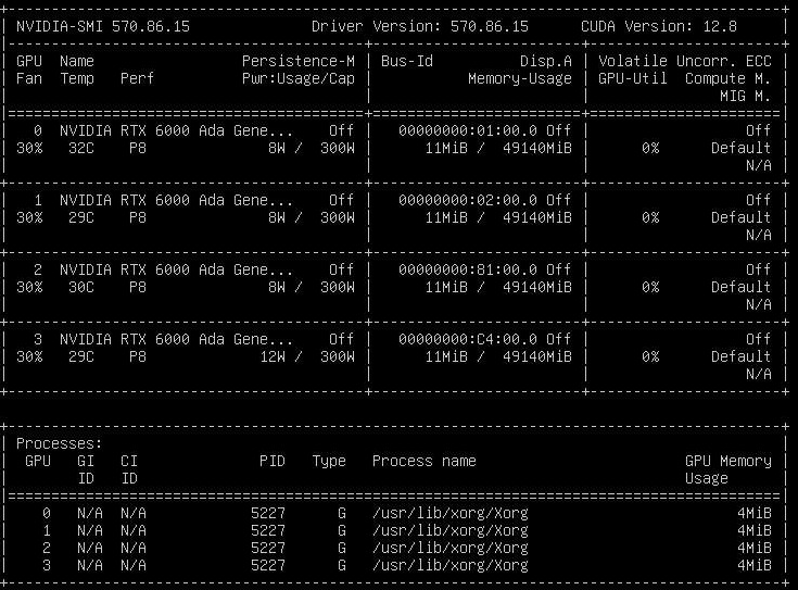 The next question was whether the system could handle the four NVIDIA RTX 6000 Ada GPUs.