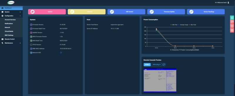 In the interest of brevity, the Supermicro IPMI/ Redfish web management interface is what we would expect from a Supermicro server at this point.