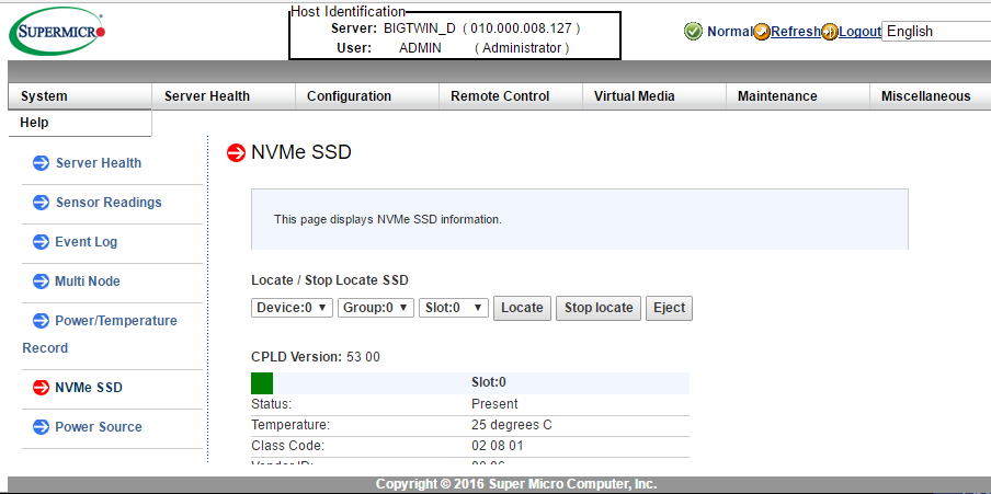 Supermicro Big Twin IPMI Management NVMe SSD Health
