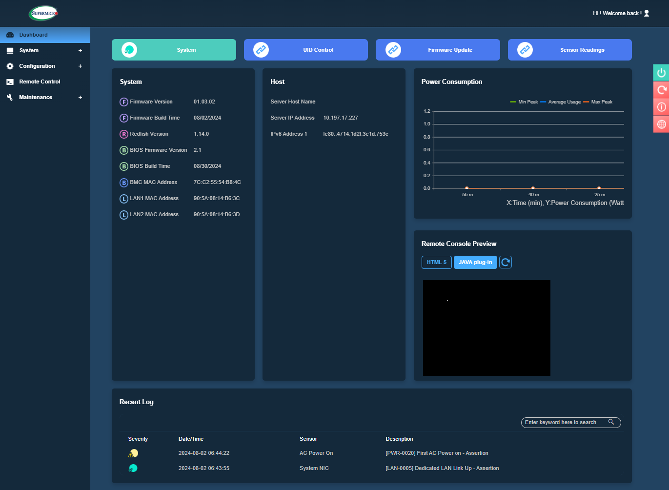 For anyone who has used a Supermicro branded IPMI interface in the last few years, this should be familiar. More importantly, it works well and reliably, allowing for full out-of-band management on the system and remote HTML5 iKVM and media support.