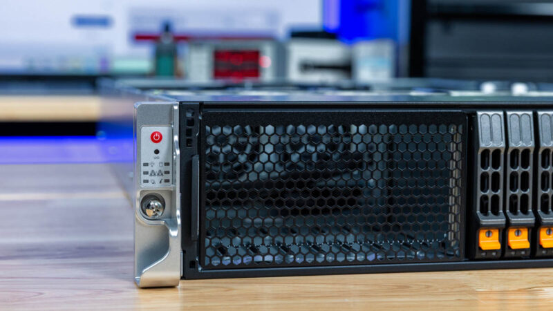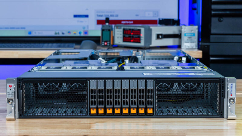 In the center, we get 8x PCIe Gen5 enabled 2.5″ NVMe drive bays.