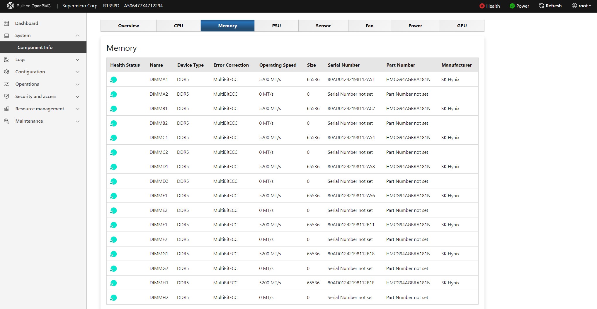 Supermicro AmpereOne OpenBMC DDR5 5200 Memory