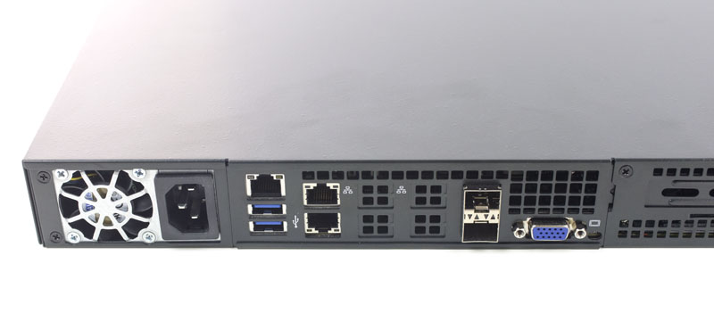 The rear I/O is where the server shines. There are a few unique features that make this an excellent networking platform. First, there are dual 1GbE network ports. These can be used as WAN/ modem uplink ports in many installations since today’s network speeds are often sub 1Gbps. For higher speed networking, there are dual 10GbE (SFP+) network ports. In higher bandwidth scenarios these can be used for WAN connections or 10Gb LAN connections.