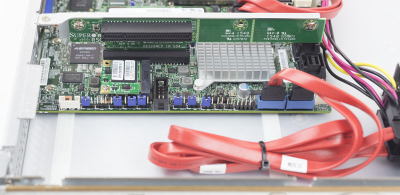 Our test server had both the mSATA and m.2 slots equipped with SSDs. The mSATA slot had a simple 64GB SSD which is absolutely perfect for OSes, especially in embedded applications. The m.2 slot was occupied by the Samsung SM951 SSD which made an excellent ZFS and Ceph caching SSD. Supermicro also has configuration options using traditional SATA DOMs as well.