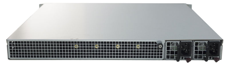 The rear of the unit has a redundant 400W power supply. Rated at 80 Plus Platinum the power supplies are efficient as well. The remainder of the rear is simply a bezel for fans.