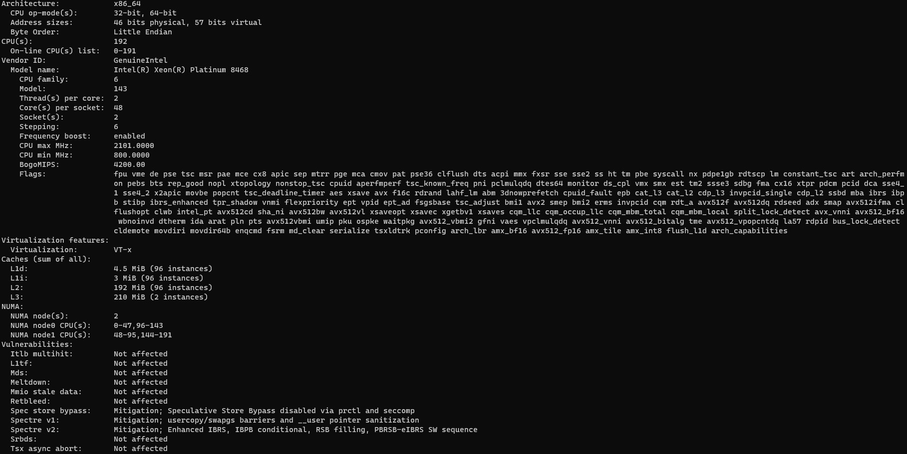 Intel Xeon Platinum 8468 Lscpu