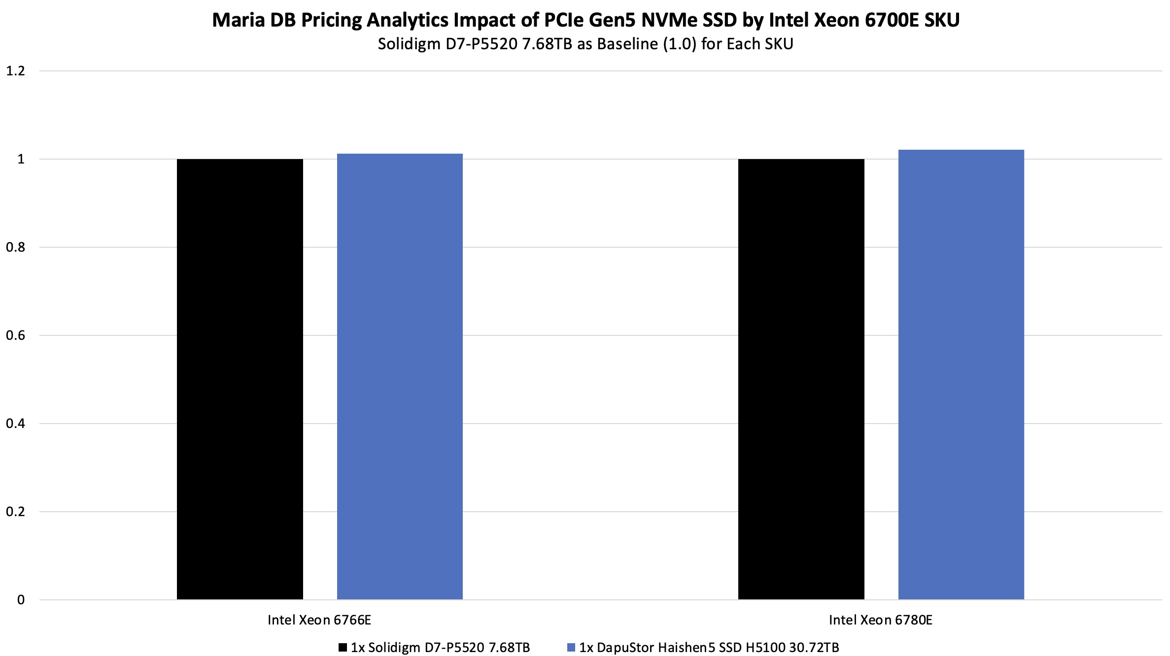 DapuStor Haishen5 SSD H5100 Impact on Intel Xeon 6780E and 6766E MariaDB Pricing Analytics Performance