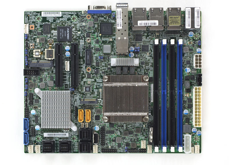 The Supermicro X10SDV-7TP8F is an amazing platform. When I first heard that Intel was moving up the launch date of the 12 core and 16 core Xeon D parts (formerly Broadwell-DE) I was extremely excited about the possibilities. Supermicro sent us a note not long thereafter and asked if we wanted to review an Intel Xeon D-1587 (top end Xeon D 16C/ 32T part) platform with dual SFP+ and an onboard LSI HBA. Unlike the smaller mITX variants (e.g. the Supermicro X10SDV-16C-TLN4F) the motherboard is a larger form factor which provides additional room for many new features. This is the same platform we used in our Intel Xeon D 12 and 16 core launch piece and for the Intel Xeon D-1587 benchmarks piece recently.
