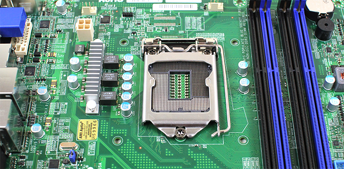 One thing to highlight here is the CPU socket. Supermicro targets the X10SLQ at the business segment. For that segment, users are more likely to use vPro enabled processors, such as the Intel Core i7-4770 versus the K series variants which are not. Since in the business user segment, most vendors are focused more on stability and cost rather than motherboard aesthetics, power delivery to processors is typically functional in nature. One can see that with Haswell, the area around the processor is much cleaner due to Intel’s focus on moving much of the power delivery on-die. This helps lower Haswell’s power consumption and is a key innovation in the new Lynx Point chipset series as found on the Supermicro X10SLQ.