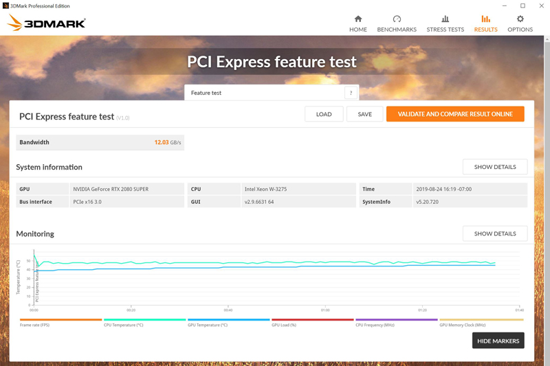 With this test we see 12.03GB/s PCIe bandwidth going to our NVIDIA RTX 2080 SUPER graphics card. We will run this test in future reviews to see how it compares between different GPU’s.