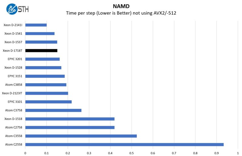 Bringing this back a bit, we wanted to see what would happen with NAMD if we did not use AVX2/ AVX-512 to get more of a base compute performance view.