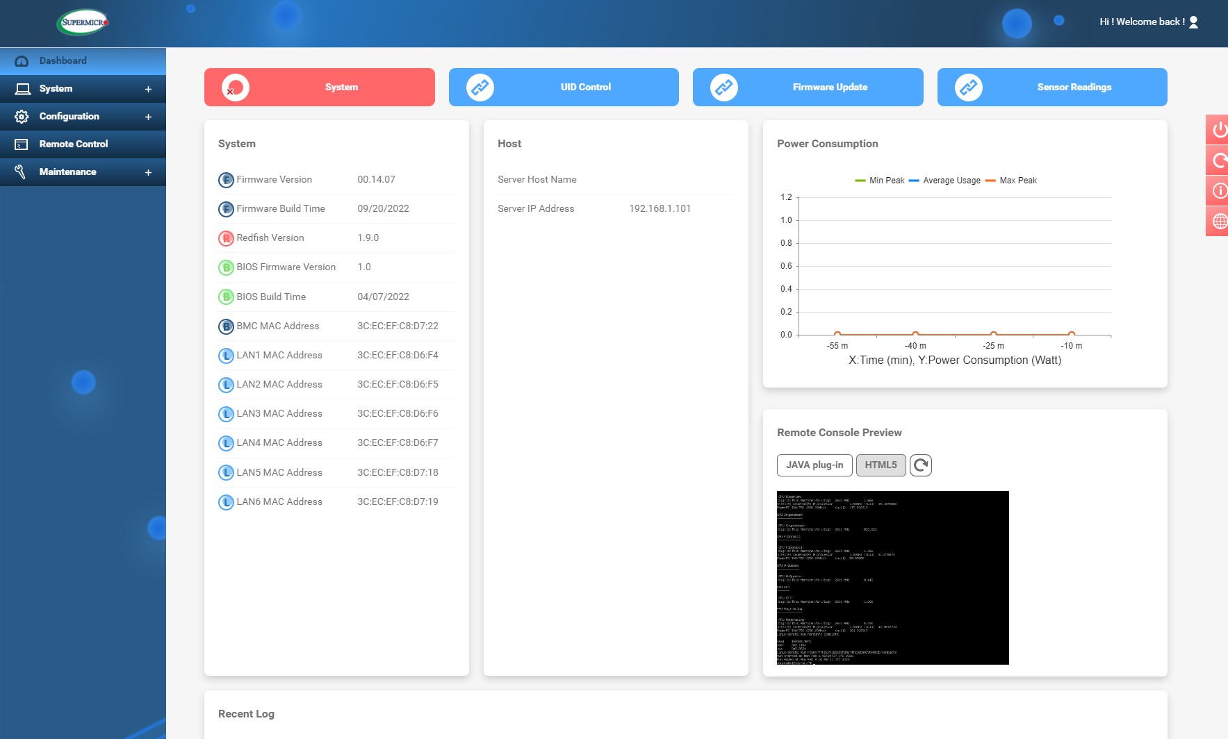 Supermicro X12SDV Dashboard