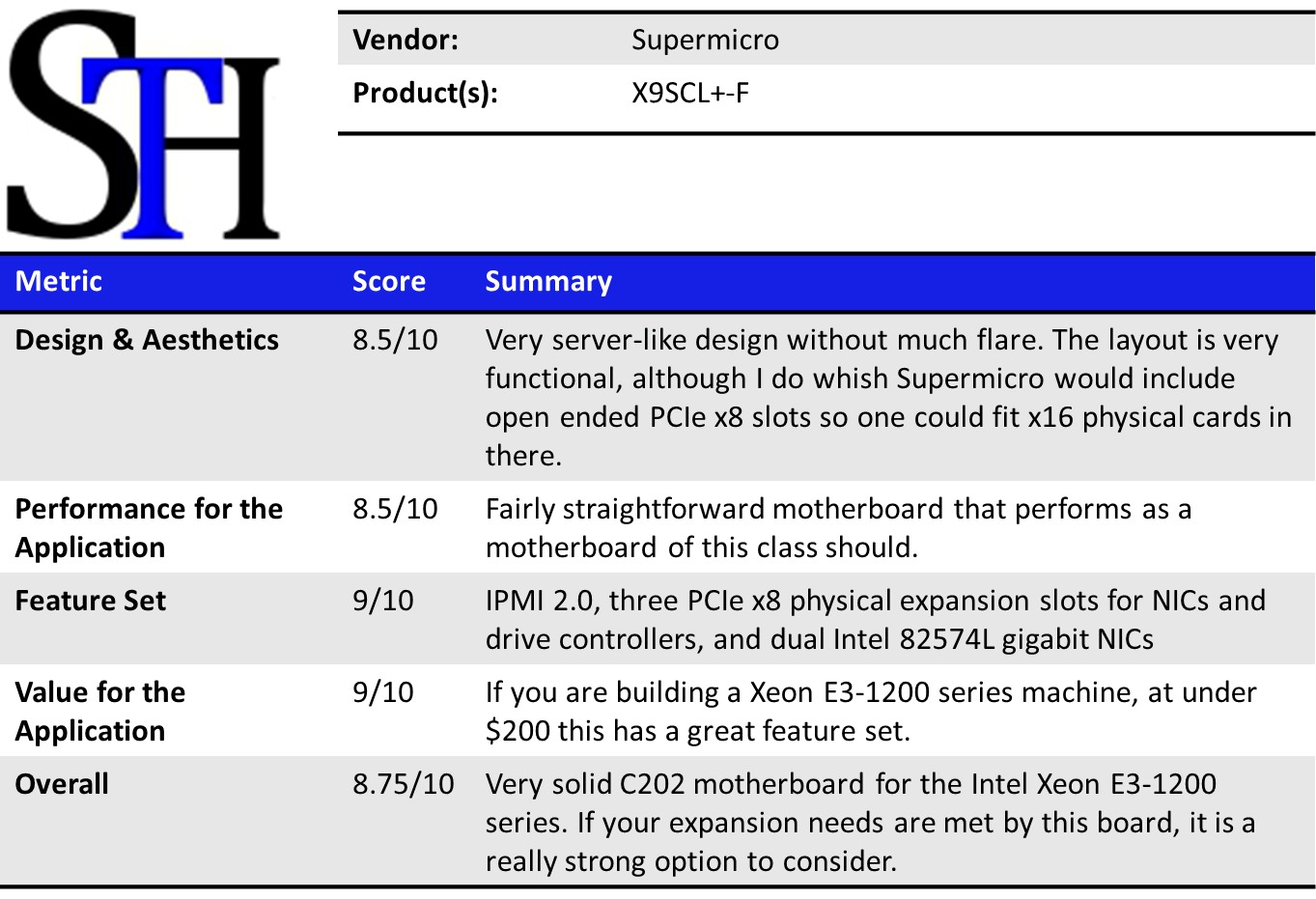 The question for me is what’s the diff between this X9SCL+-F and the X9SCM-iiF (rev2 of the X9SCM-F board). The only thing that is obvious is the missing fourth PCIe slot on the X9SCL+-F that is present on the X9SCM-iiF