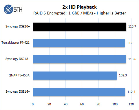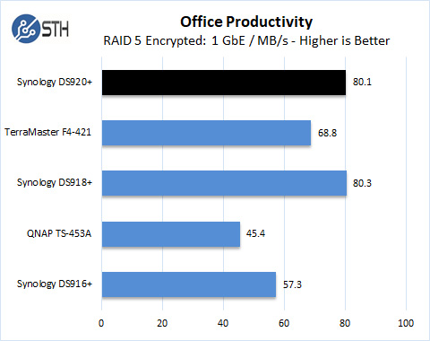 Our encrypted benchmarks of the Synology DS920+ 4-Bay 1GbE NAS show again that it’s up to the task of encryption use. Most of our test samples handle encryption well, except for older units that struggle with encryption cases.