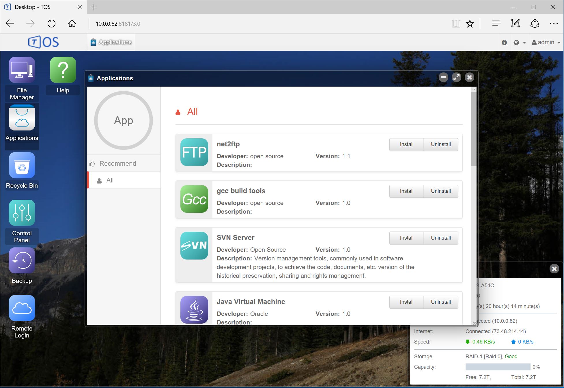 After logging in with our Admin login information we are presented with the TOS desktop. The TOS desktop looks similar to units we have seen from companies like Synology and QNAP. We were pleasantly surprised with how polished the UI felt.