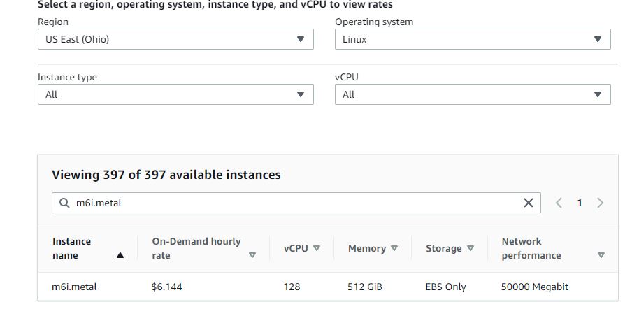 AWS US East Ohio M6i.metal