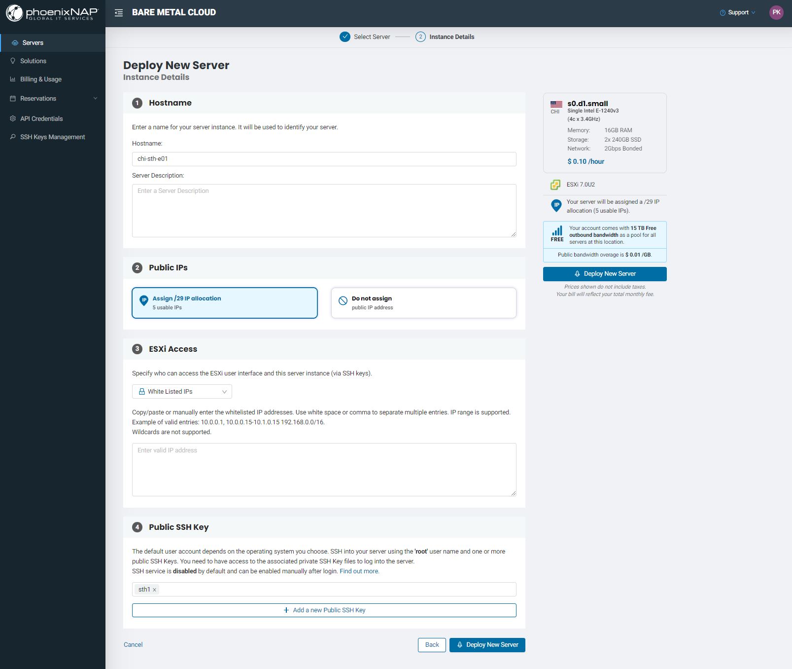 PhoenixNAP BMC Deploy VMware ESXi Server