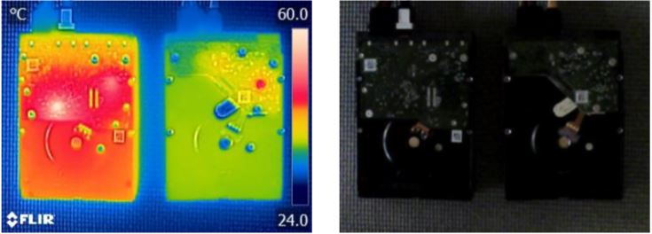There is a famous comparison that many buyers of the WD NAS drives have seen before buying. From the WD site there is a FLIR image of a typical 7200 rpm hard drive (or so we can assume given there is no information on which drive it is.)