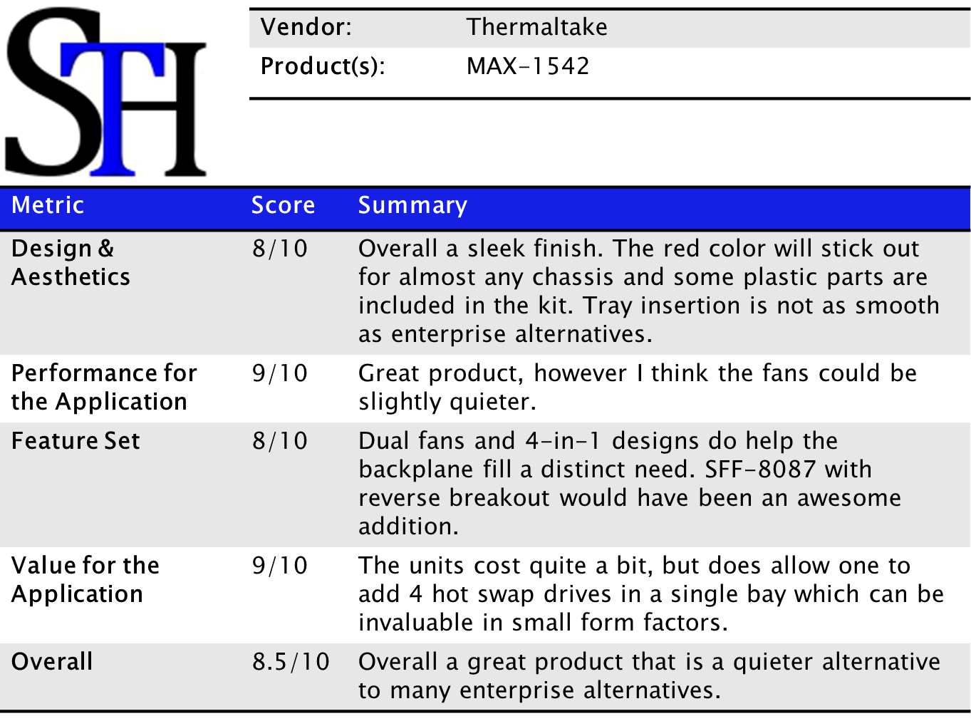 Overall, for those looking at a consumer 4-in-1 for solid state drives, the Thermaltake MAX-1542 is a great option. It is relatively quiet which is much better than those units intended for servers. For those users that want hot-swap SSD trays and have limited space, this is an excellent option. I tried nine different drives in the enclosure and all fit without issue. I will say that this would have been slightly better if Thermaltake were to use all metal drive tray mechanisms and a color other than red. Just looking at the all black Carbide 500R chassis the red handles really pop out. I may be in the conservative minority on this one, but black would have been just fine for these. The Thermaltake MAX-1542 did a great job and nearly earned a 9/10 to the point that I delayed the go-live of this piece a week just because I was unsure of a 8.5 versus 9.0 overall score. In the end, for those users that need this kind of density, and that do not mind spending the money, this is a great option. Two of these can be used with an inexpensive controller such as the IBM M1015 to get a nice eight drive 6.0gbps subsystem.