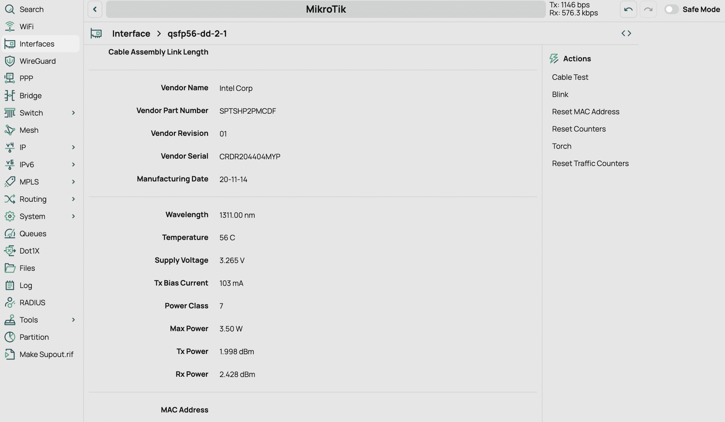 Intel Silicon Photonics QSFP56 DD 400G DR4 Yellow In MikroTik