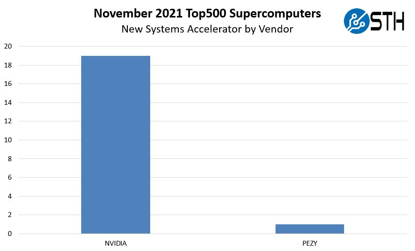 Unlike the June 2021 list, NVIDIA is not the only accelerator vendor for the new systems. Here is a breakdown in our accelerator by vendor chart: