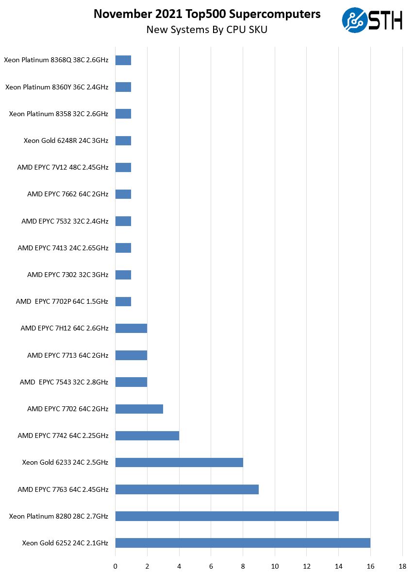 Perhaps the shocking bit is that 14 of the systems use the Intel Xeon Platinum 8280, but none are using the new Platinum 8380. It seems a bit strange that those Platinum 8280’s are on the list just given they now feel dated in a world with the EPYC 7763.