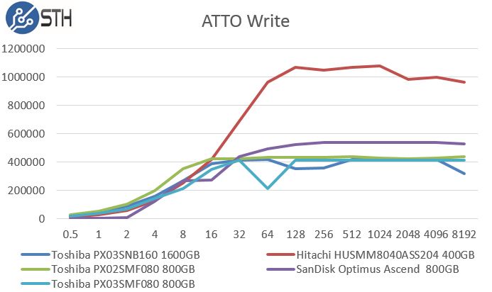 Toshiba PX03SMF080 800GB ATTO Write Benchmark Comparison