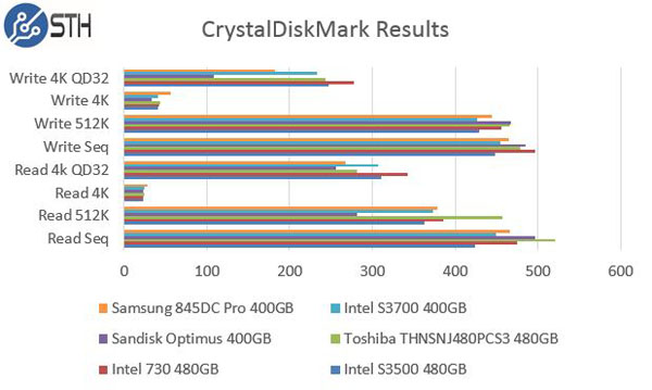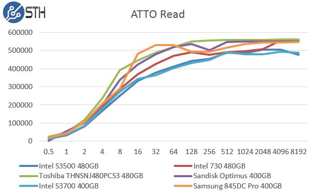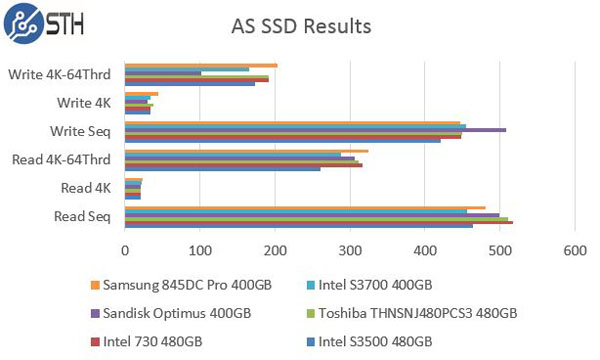 We are using a SAS controller so one cannot compare results directly to consumer-driven setups where a SATA SSD is connected to an Intel PCH port. There is a latency penalty for going over the PCIe bus to a controller to SAS. It also is a reason NVMe is going to be a game changer in the enterprise storage space.