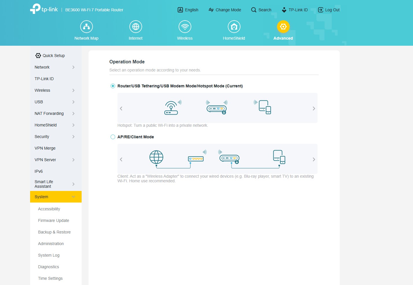 TP Link BE3600 Wi Fi 7 Portable Router Setup Change Modes