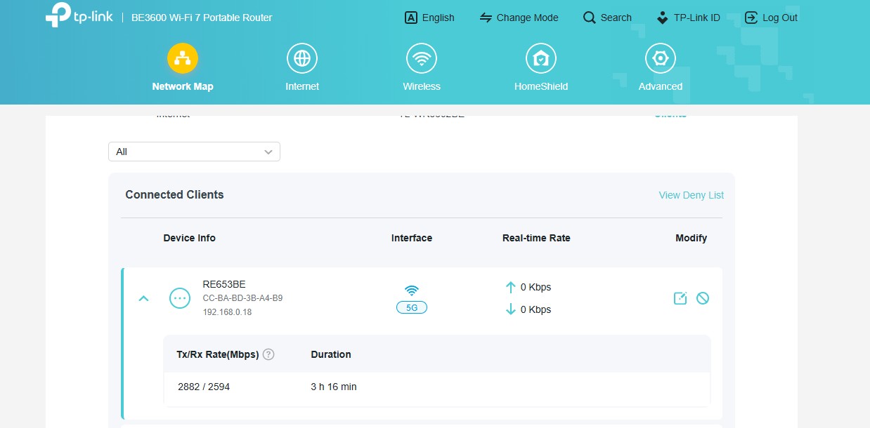 TP Link BE3600 Wi Fi 7 Portable Router WiFi Tx RX Rate Mbps