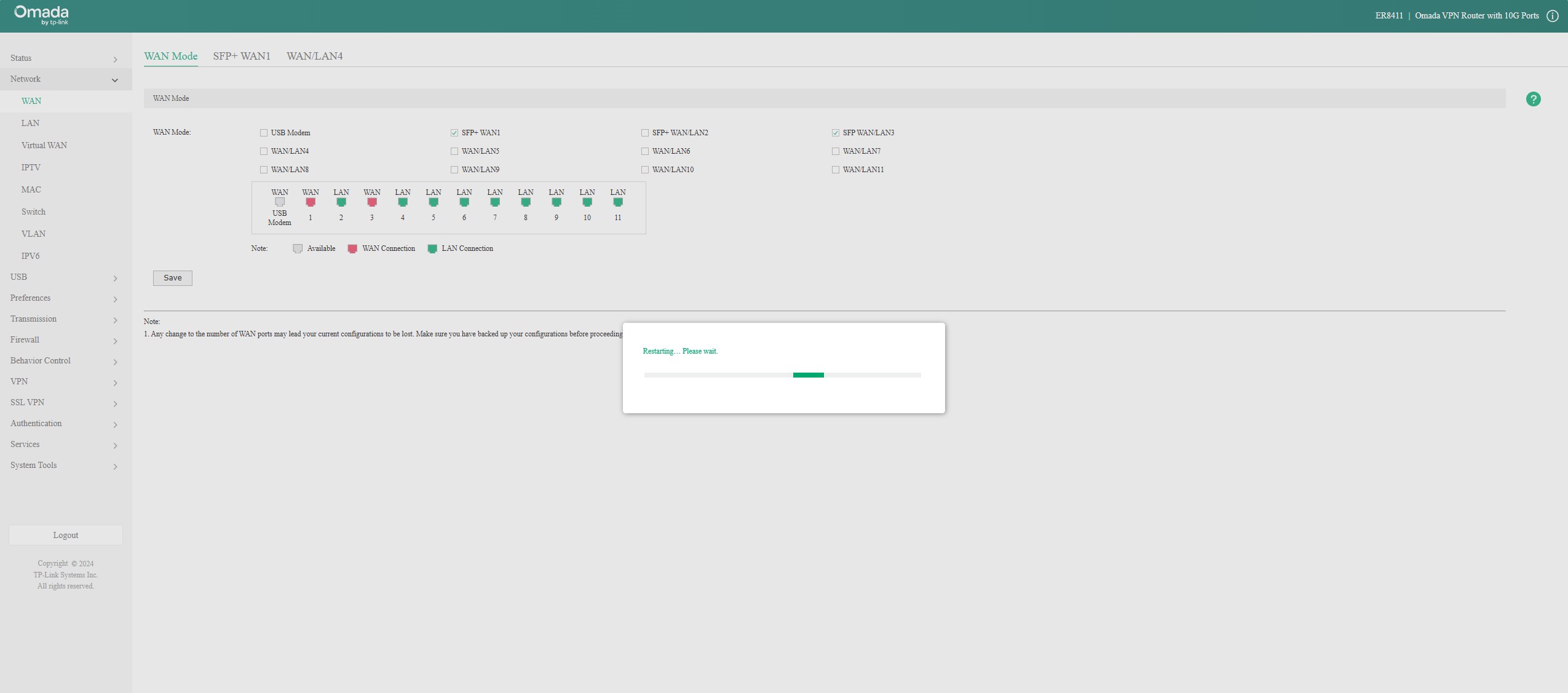 TP Link ER8411 Management WAN LAN3 Change Restart
