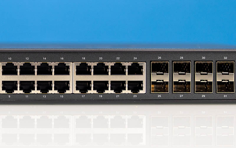 The 24 ports are all 2.5GbE and 1GbE ports. We tested at those speeds, but they are supposed to also work at 10M/100M speeds. The eight SFP+ cages we tested at 10GbE speeds, but have status LEDs for 2.5GbE and 1GbE speeds, but not 5GbE.