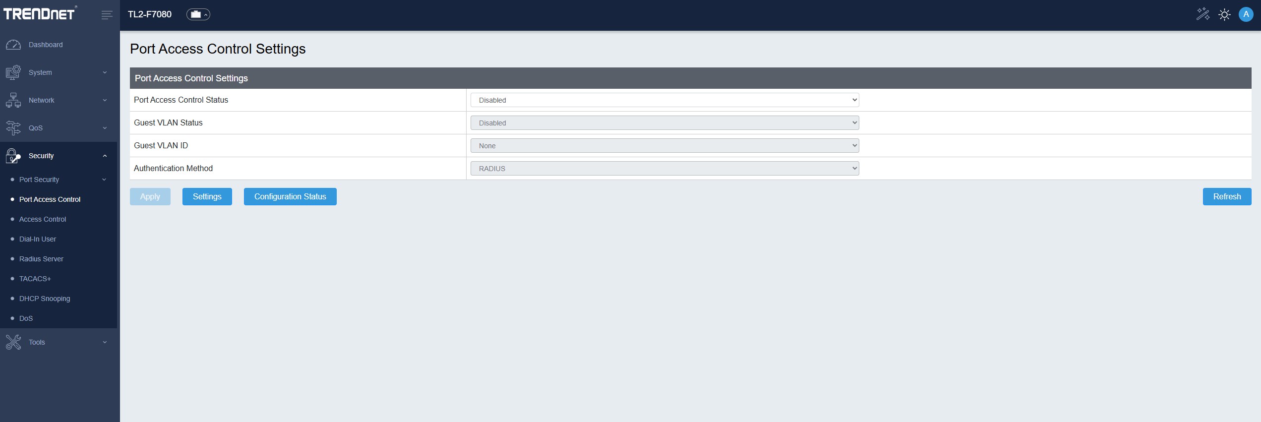 TRENDnet TL2 F7080 Web GUI Port Access Control